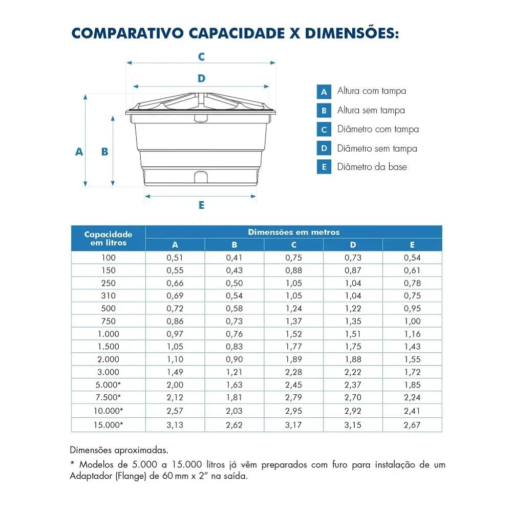 Itens inclusos: 1 Caixa D'água 1000 L