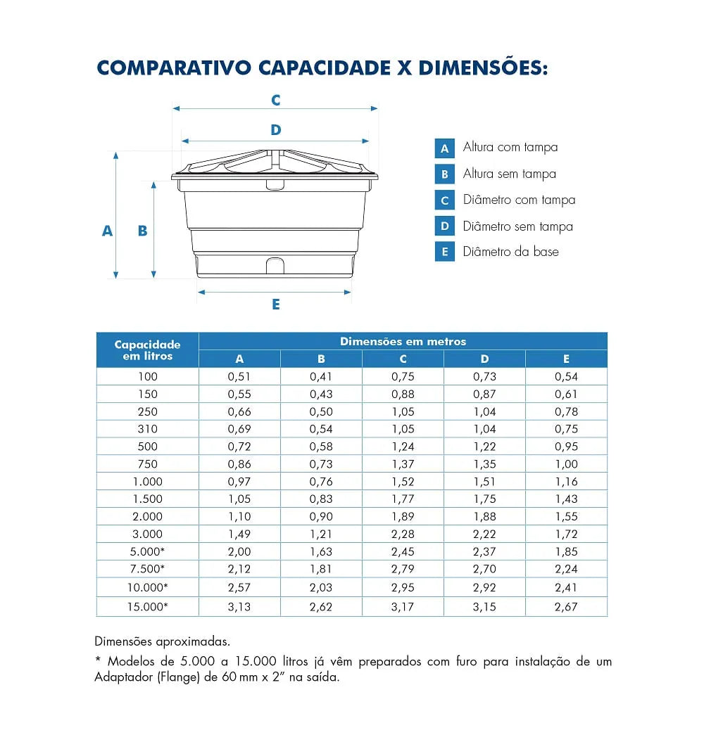 Conta com sistema exclusivo de encaixe da tampa, que assegura vedação eficiente e proteção contra impurezas. Indicada para instalações residenciais, comerciais, escolares e outros ambientes que necessitam de água em temperatura ambiente.
